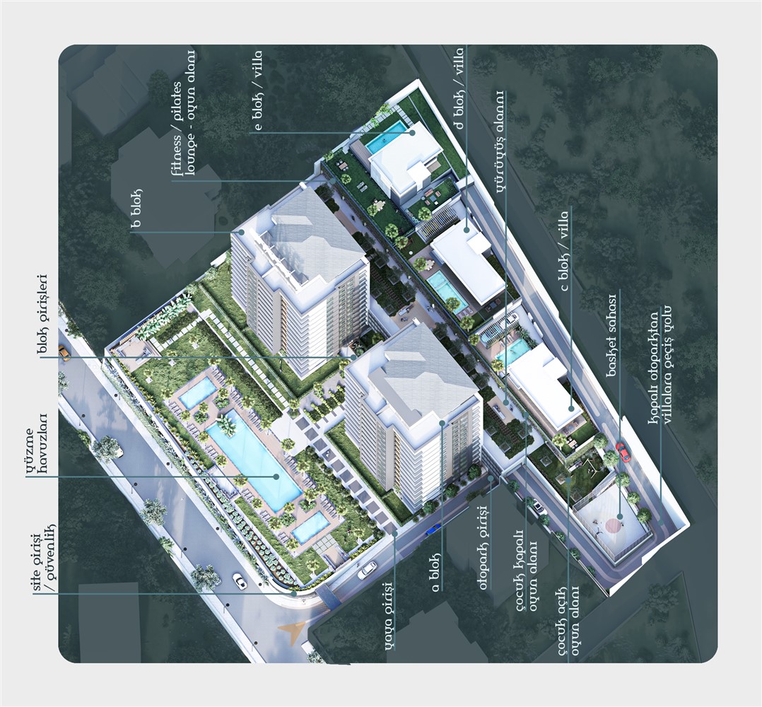 - Konut Tipleri: 2+1, 3+1, Dubleks, Villa